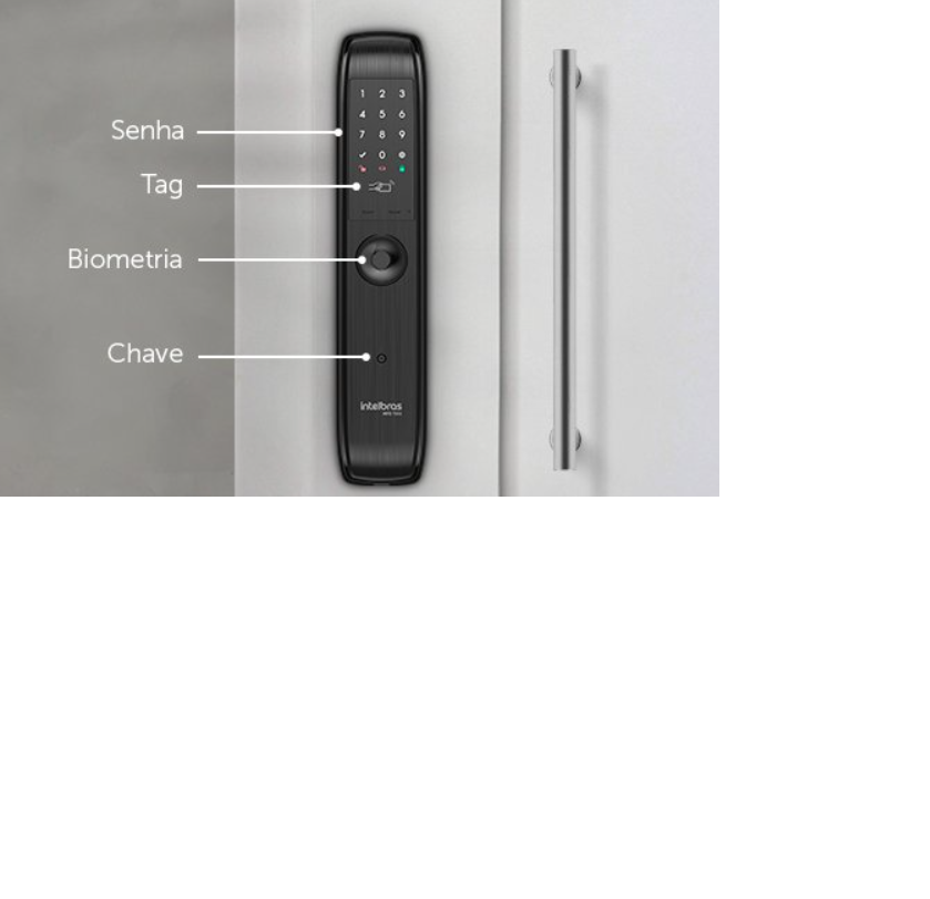 Alimentação por 4 pilhas AA com duração média de 1 ano. (10 acessos diários)